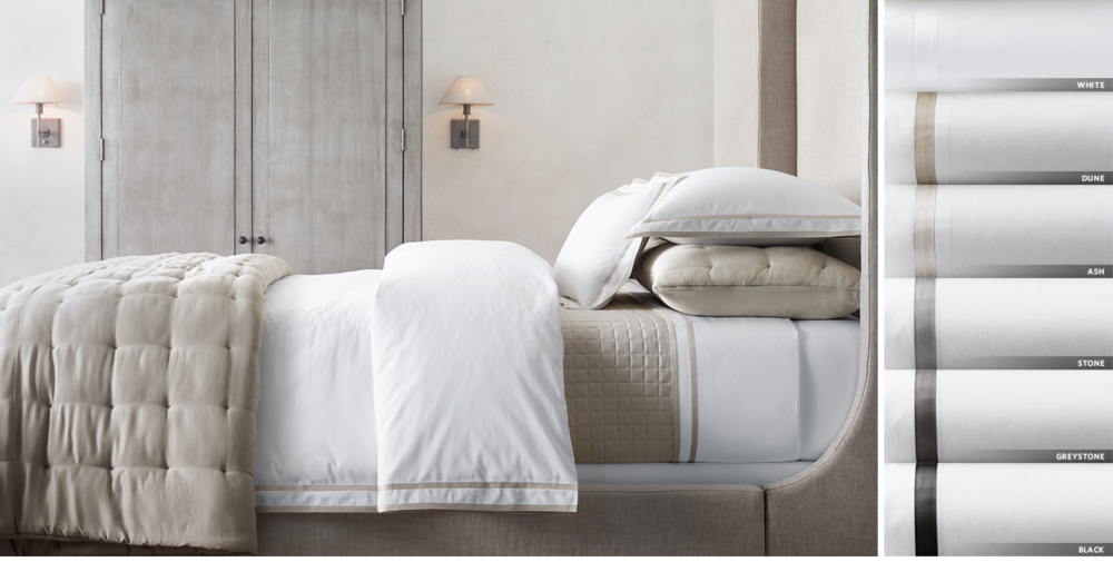 Bedding Collections | RH Window Hardware. Stocked Window Hardware; Outdoor Window Hardware; In-Stock. Drapery; Window Hardware; Sale . Shop All Sale; Décor. Cabinet Hardware. ... Italian Giza Cotton 700-Thread-Count Sateen Bedding Collection. Shown in White/Dune. Full/Queen Starting at $ 1549 Regular / $ 1161 Member. Italian Bold Border Cotton Bedding Collection.